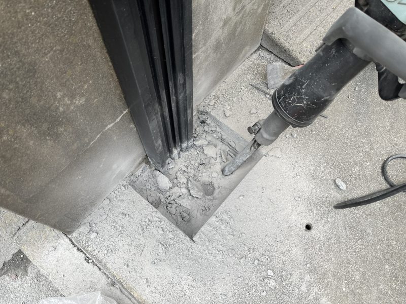 また、門扉の横にあったブロック塀の一部も撤去。この部分があることで、ドアが途中までしか開かず、どうしても人の乗り降りに支障が出ていたため、10cmほどのブロックを解体してスペースを確保しました。