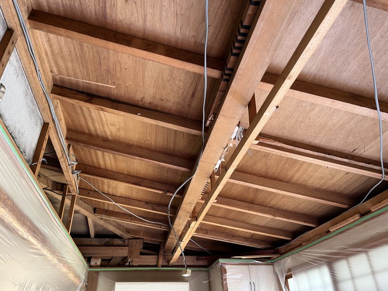 • 耐震性のチェック: 天井を剥がしたこの機会に、構造材(梁や桁)の腐食・シロアリ被害がないか、専門家による徹底的なチェックを行うことが推奨されます。雨漏りが原因であれば、必ず構造の安全性を確認しましょう。